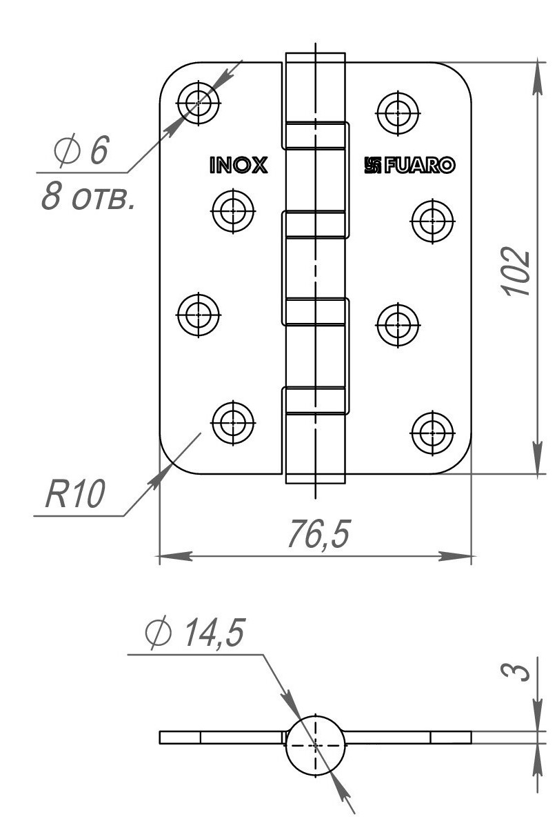 Петли 4BB-R10 102х76х3 мм (INOX) изготовлены из высококачественной нержавеющей стали.
